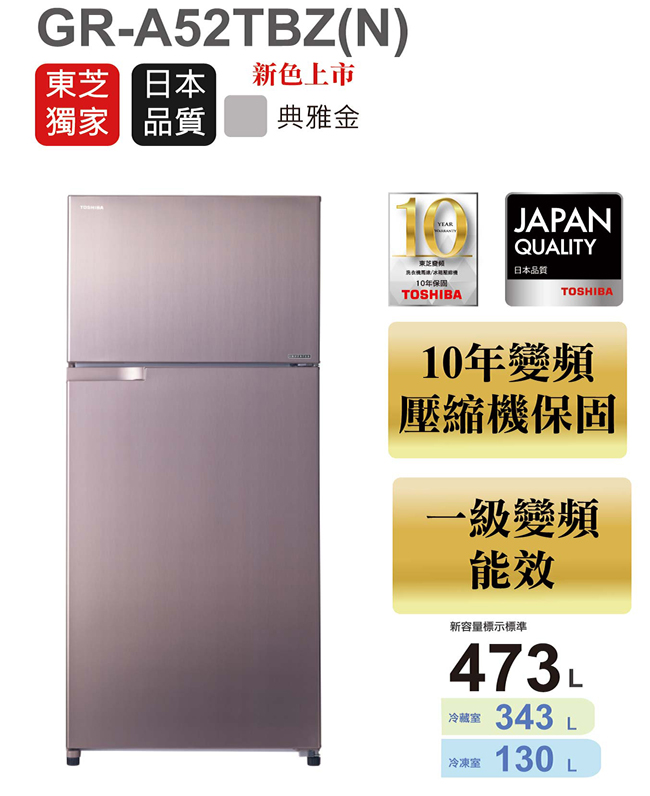 【最新購物優惠分享】TOSHIBA 東芝 473L 雙門變頻電冰箱 優雅金 GR-A52TBZ(N)-本月限時購買折扣